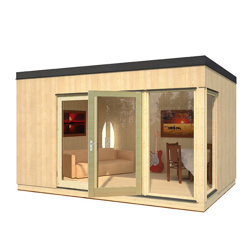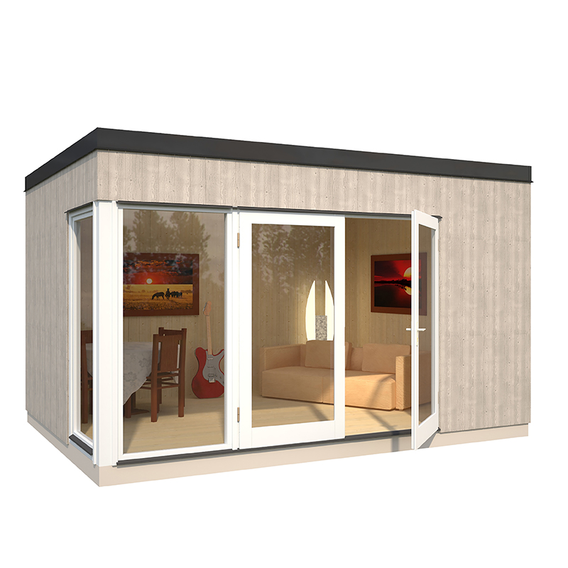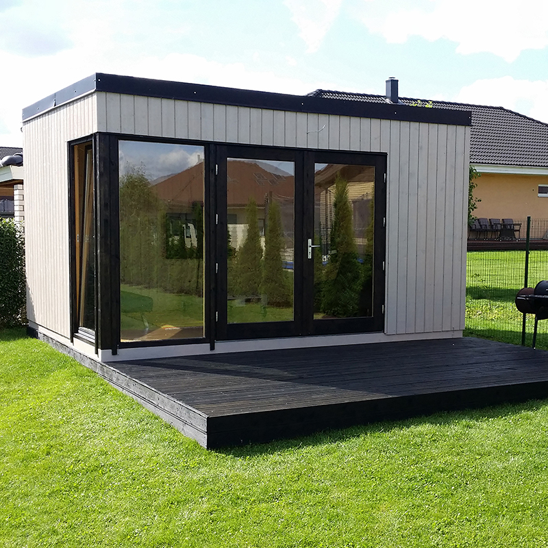 Solveig är en modern stuga med härdade 2-glasfönster och pardörr med cylinderlås och gummitätning samt dropplist i aluminium. Kraftiga djupimpregnerade grundbalkar ger huset stabilitet och en lång livslängd. Trendig finsågad utvändig panel. 5 års garanti.