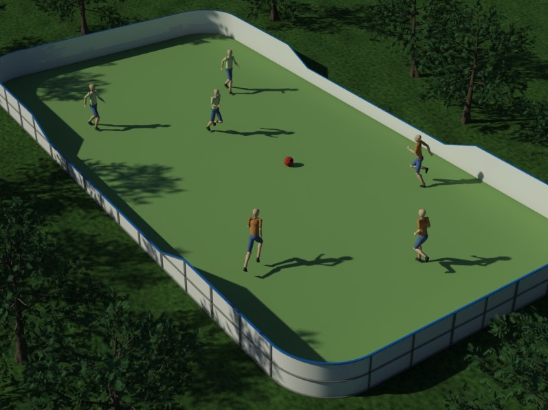 Alla våra sargar för spontanidrott har hörn med kurvradie 1,5 meter, standardmått är 10 x 20, 15 x 30 eller 20 x 40 m.