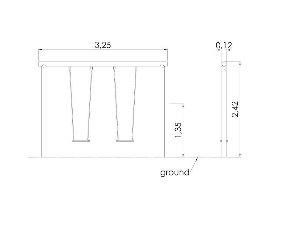 Denna typ av gungställning är en av de mest använda på lekplatser och fungerar som en stabil bas för rörelselek. Genom att komplettera med valfria säten kan man enkelt anpassa funktionen för olika åldrar och användningsområden – från traditionella gungor till mer inkluderande alternativ.