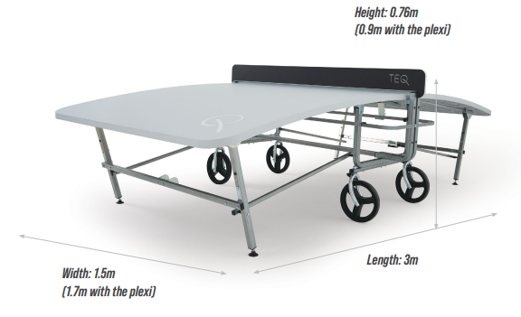The strong and weatherproof table is suitable for use in public spaces and in outdoor conditions.