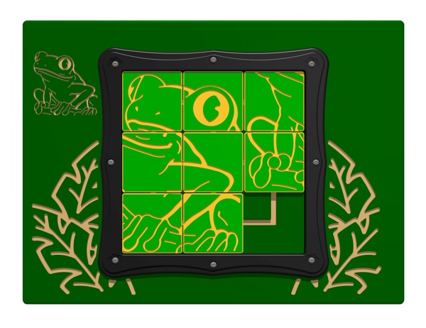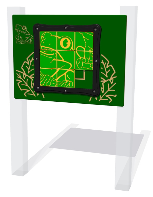 Can you recreate the frog? Move the sliding tiles on the Tile Slide Frog Play Panel.Constructed from HDPE panel, the product features eight sliding tiles with frog graphics, an easy-glide track, a puzzle frame with stainless steel fasteners and can either be wall or post mounted.