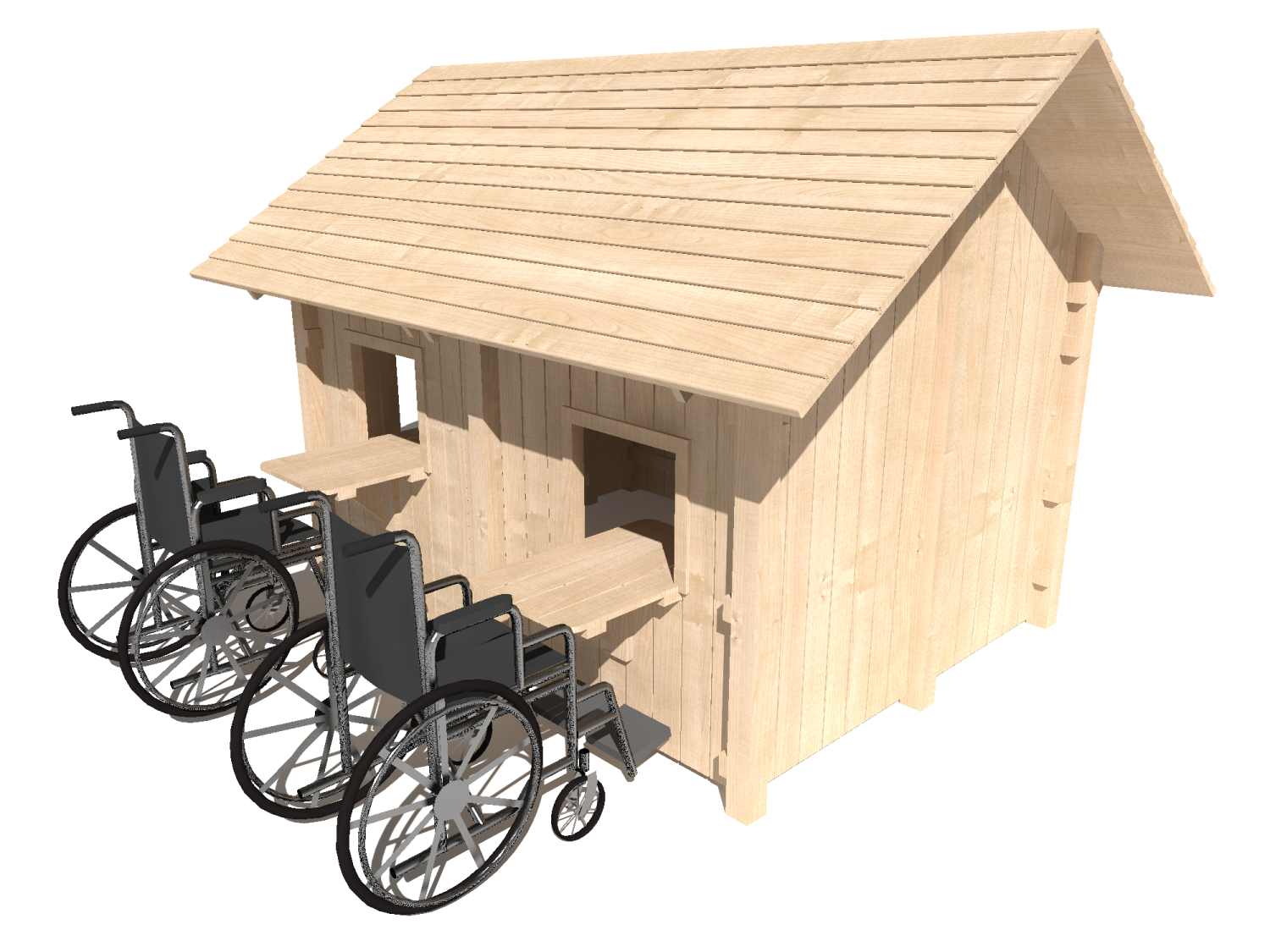 Kiosken levereras utan golv eftersom ett stuga utan golv ger en bättre tillgänglighet för rullstolar.