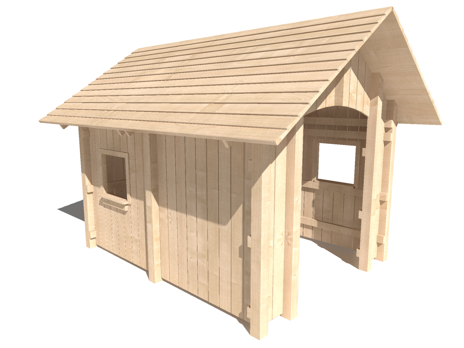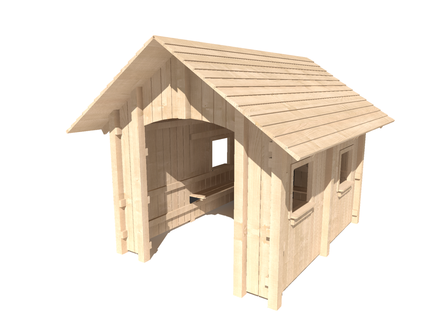 Tillsamman med vår andra produkt, "Tillgängliga kiosken Adam" kan du med en eller flera lekstugor skapa en hel lekby till barnen.