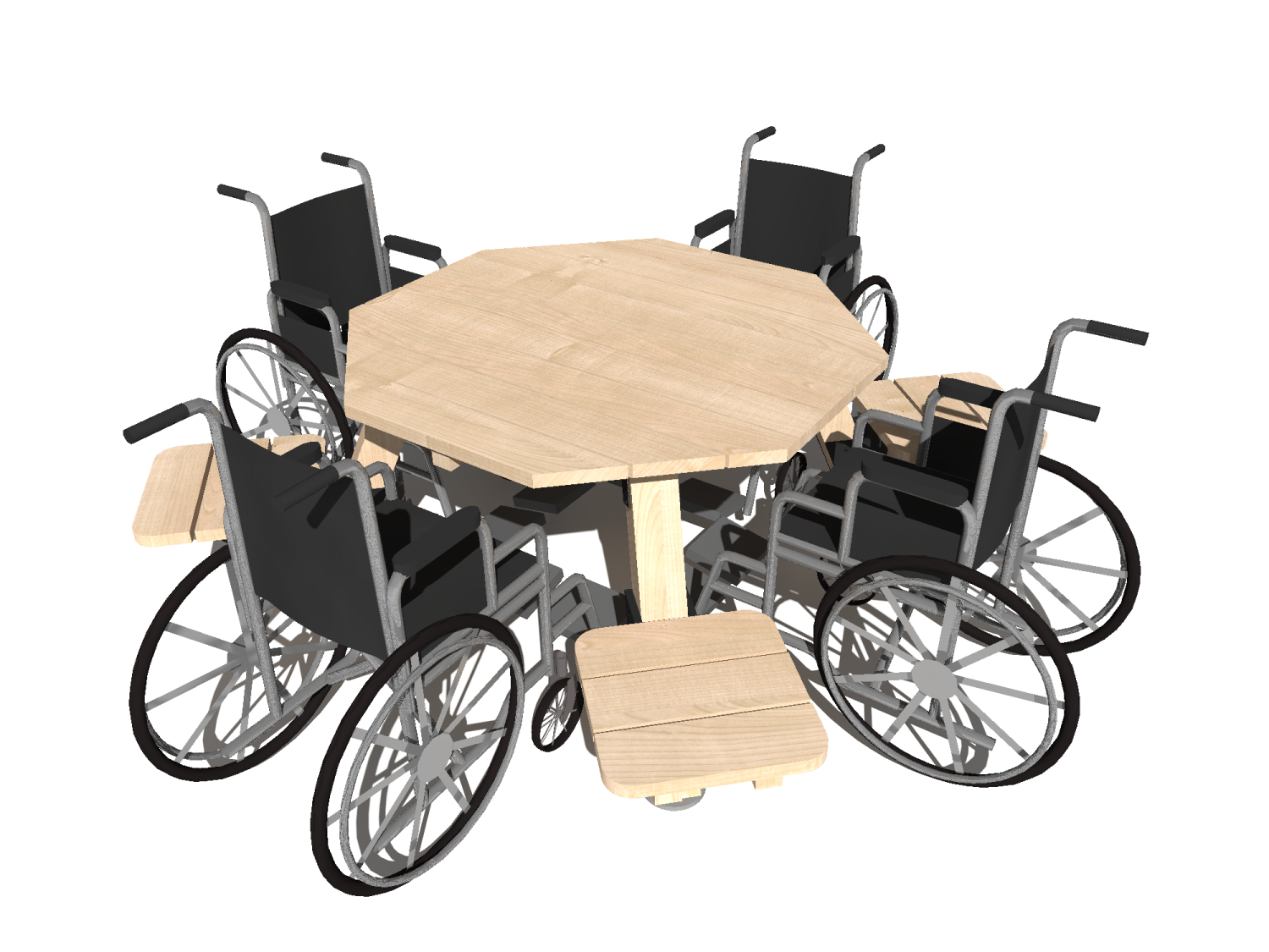 Eller kanske du jobbar inom vården och vill enkelt kunna sitta Tillsammans med dina vårdtagare? Borden passar utmärkt i alla utemiljöer med fokus på Tillgänglighet. Skolor, äldreboenden och LSS boenden är, tillsammans med våra offentliga utemiljöer exempel på platser där bordet kommer till stor nytta.