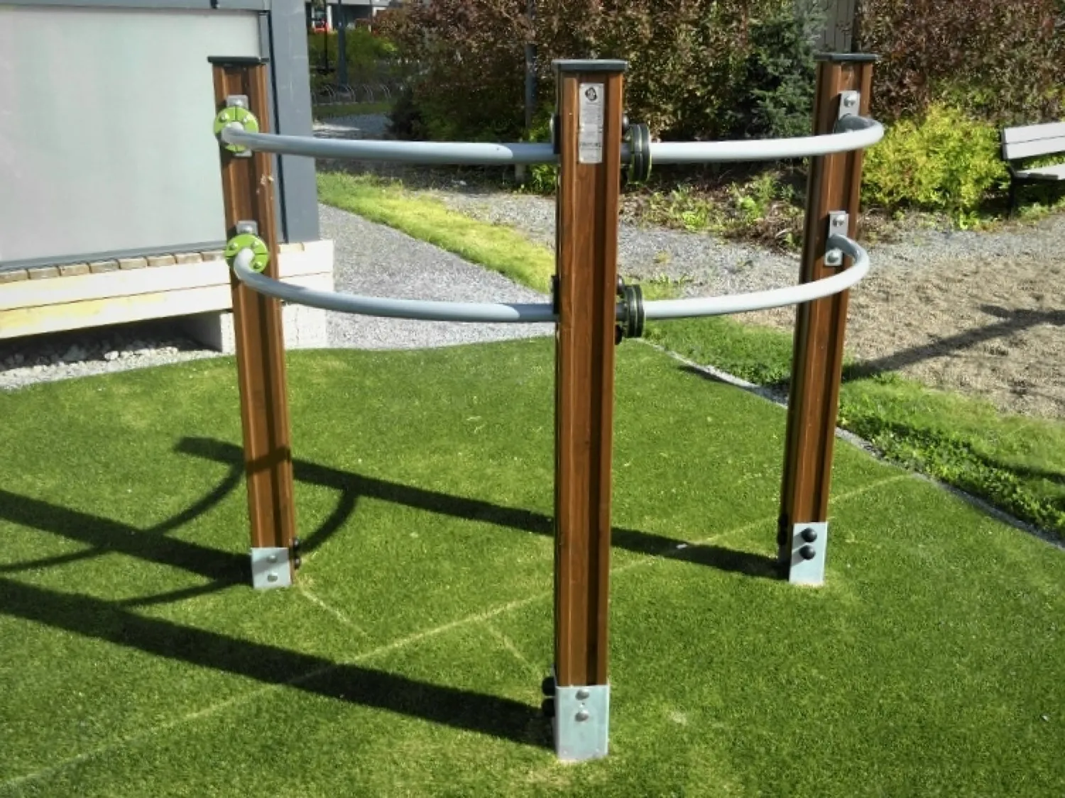 En trygg och effektiv träningsstation som uppmuntrar till rörlighet, styrka och välmående – perfekt för seniorträning i det fria! 🌟