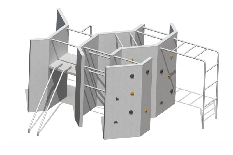 Stainless steel tubes, strips, platforms and weatherproof textured wear-resistant plywood walls imitating concrete look the strong look of the URBAN series products is created by high-quality materials that ensure resistance to weather and vandalism. The URBAN theme series can be assembled into a powerful town but each attraction is also challenging on their own.