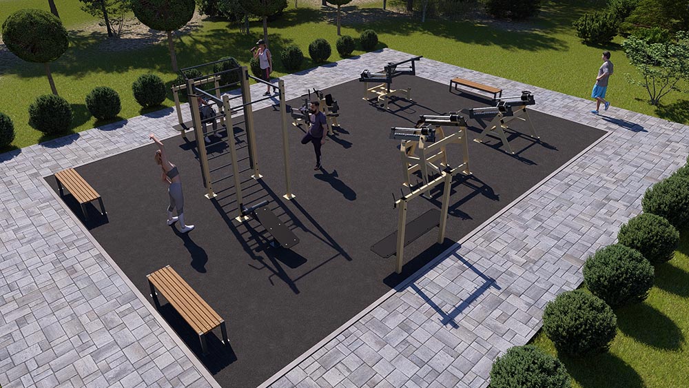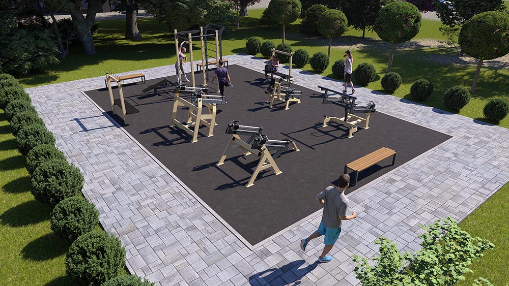 Ett komplett och yteffektivt utegym som kombinerar fem populära träningsstationer och en kompakt rigg. Ett perfekt paket för mindre parker, skolor, bostadsområden och aktivitetsytor som vill erbjuda säker och funktionell utomhusträning året runt.
