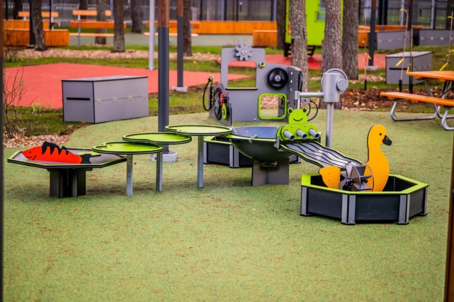 Ett mångsidigt sandlek- och vattenkomplex för små barn – fullt av interaktiva funktioner som väcker nyfikenhet, kreativitet och rörelseglädje! 🌿