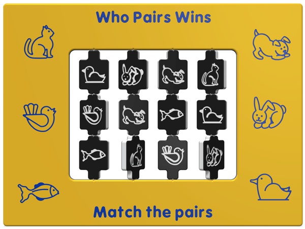 Match the animals! Take it in turns to flip the animal discs to pair them together.Constructed from HDPE panel, the product features 12 flip over discs and stainless steel spinner shafts.