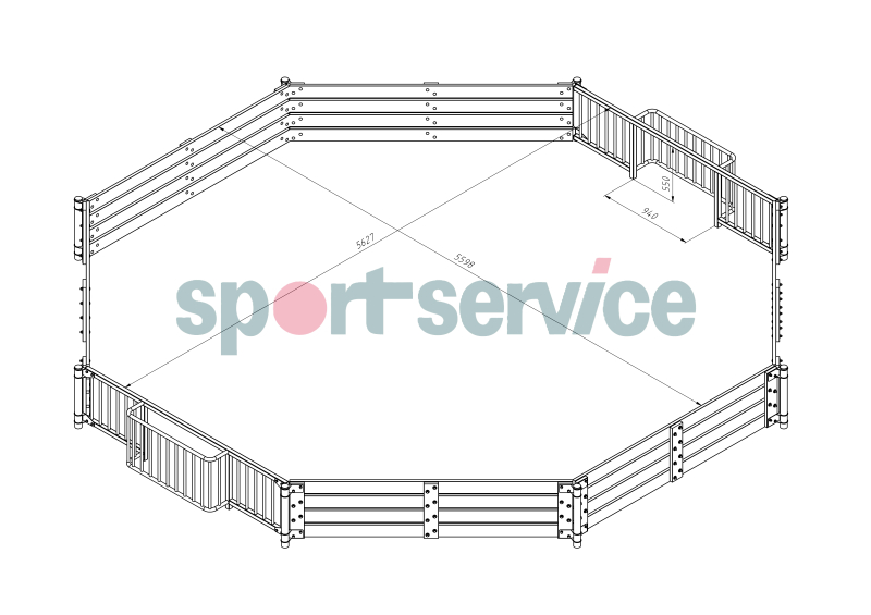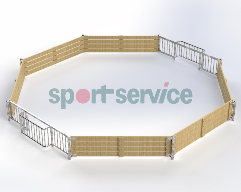 Arenan är tillverkad av förmonterade träpaneler. Panelerna monteras i de varmförzinkade stolparna med medföljande bultar. Två stycken helsvetsade mål ingår som en del av barriären.
